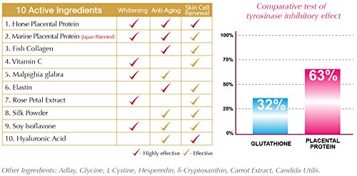 -. Binding : Misc. -. Brand : Mosbeau -. Feature : It has 10 active ingredients from Japan, to give you fairer and younger skin / Visibly whitens skin in just 14 days / Especially formulated for Asian skin / Tried and trusted by millions of women worldwide / 100% Made in Japan proven safe and effective -. Label : Mosbeau -. Manufacturer : Mosbeau -. ProductGroup : Beauty -. ProductTypeName : BEAUTY -. Publisher : Mosbeau -. Studio : Mosbeau -. Title : Mosbeau Placenta White Advanced Supplement for Skin Whitening 2015 Japan Patented Twice As Effective As Glutathione