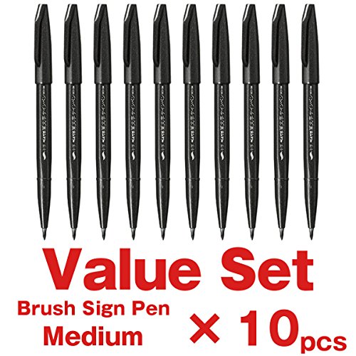 -. Title : Pentel Fude Touch Brush Sign Pen, Medium, Value Set of 10 with Ecology Sticky Notes
