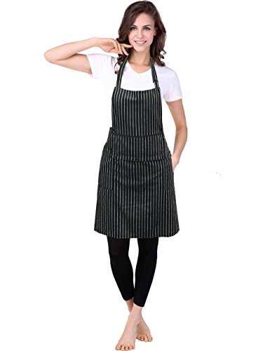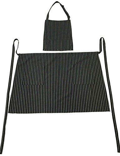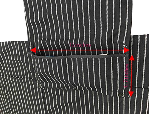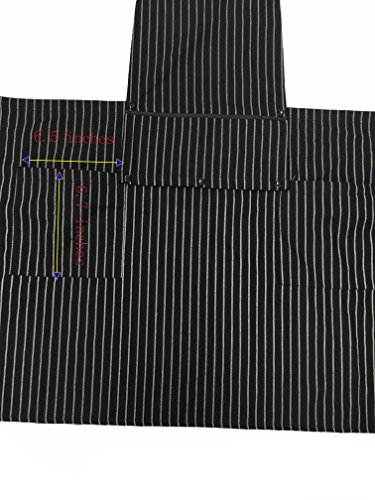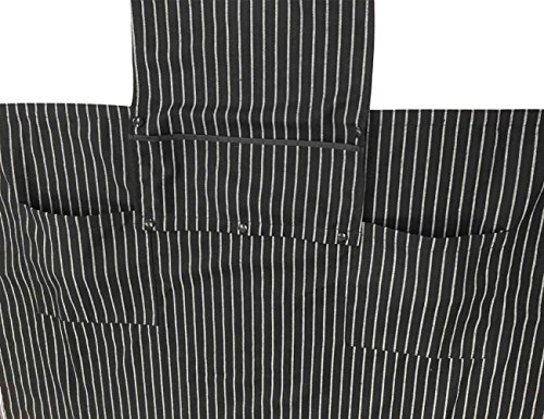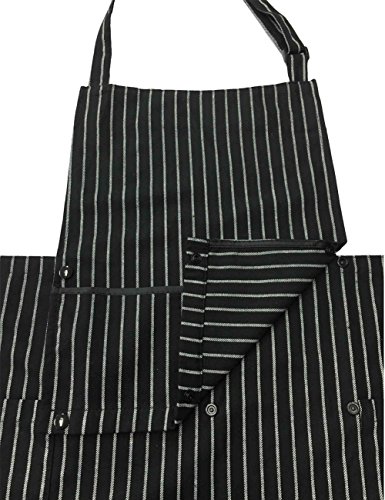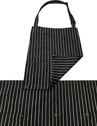WM BEAUTY Special Design Chef Works Chalk Stripe Bib Apron with 3 Pockets,Adjustable Neck Strap, 28 X 26 inches , 100% Cotton,Black