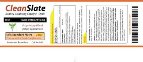 -. Binding : Health and Beauty -. Brand : United States -. EAN : 0801812198103 -. Feature : Clean Slate 48 Hour Formula Potent, Deep Kidney Cleansing and Detox / A 'kidney cleanse' sets out to detoxify the kidneys in order to prevent stones from forming, to encourage healthy kidney function, boost immunity and clear toxins from the body. / Our kit contains 18 maximum strength capsules. (1-3) capsules can be taken (2-3) times a day for (2) days.....AND THAT IS IT! No need to go through a week or 2 weeks of slow cleansing. After the initial 2 day cleanse, if desired, the product can be taken in smaller doses (1-2 capsules) every few days. / When cleansing your kidneys, it is very, very important to drink lots of fluid. This product is intended to help you cleanse your system and should not be taken to cure or fix any specific health issue(s) associated with the kidneys. Consult your doctor if you feel you may have serious kidney or other health issues. -. Label : United States -. Manufacturer : United States -. PackageQuantity : 1 -. ProductGroup : Health and Beauty -. ProductTypeName : HEALTH_PERSONAL_CARE -. Publisher : United States -. Studio : United States -. Title : Rapid Deep Kidney Cleanse & Detox Clean Slate 48 Hour Formula -. UPC : 801812198103