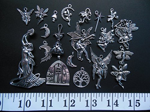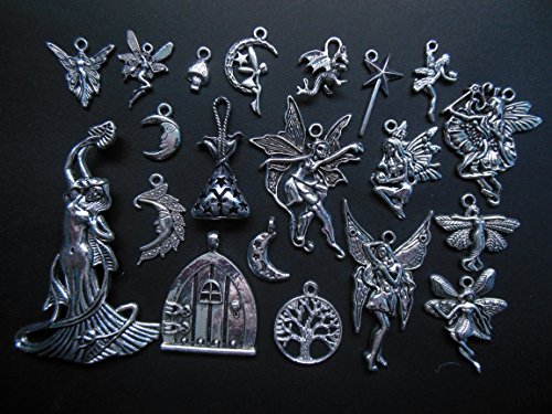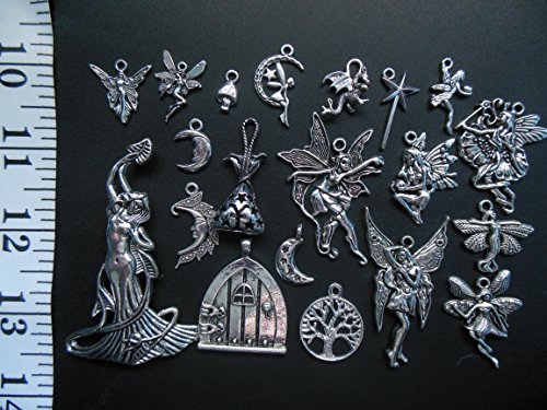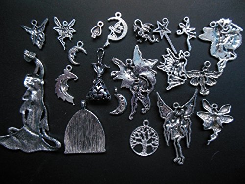 20pc Charm Pendant Set Made with lead free zinc metal alloy Silver color Sizes varies Theme: Magic, Fairy, Fantasy Brand : AV BEADS Item model num : 3154