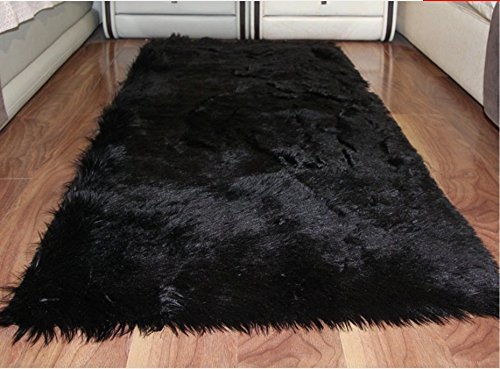 (HUAHOO)/Nursery/Nursery Decor/DIRECT FROM USA/HUAHOO Faux Fur Sheepskin Rug Black Kids Carpet Soft Faux Sheepskin Chair Cover Home Decor Acce...