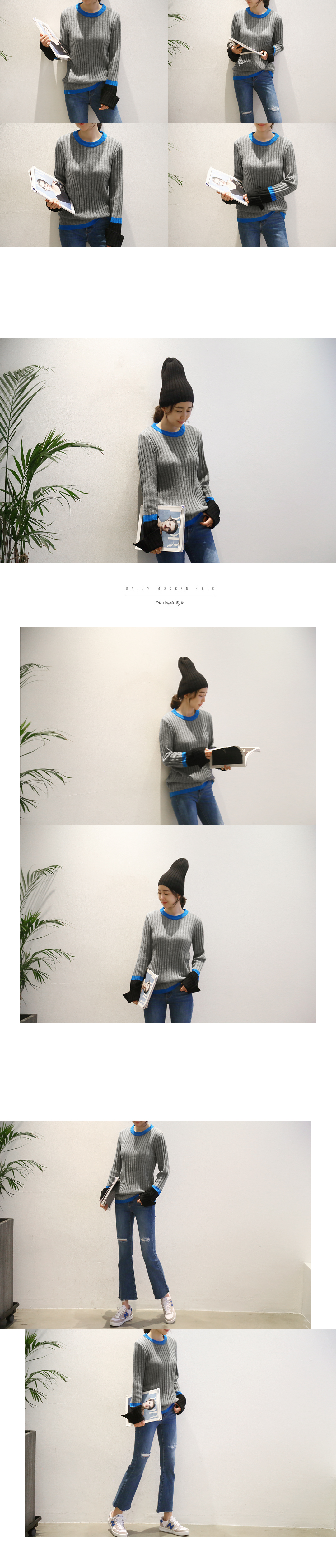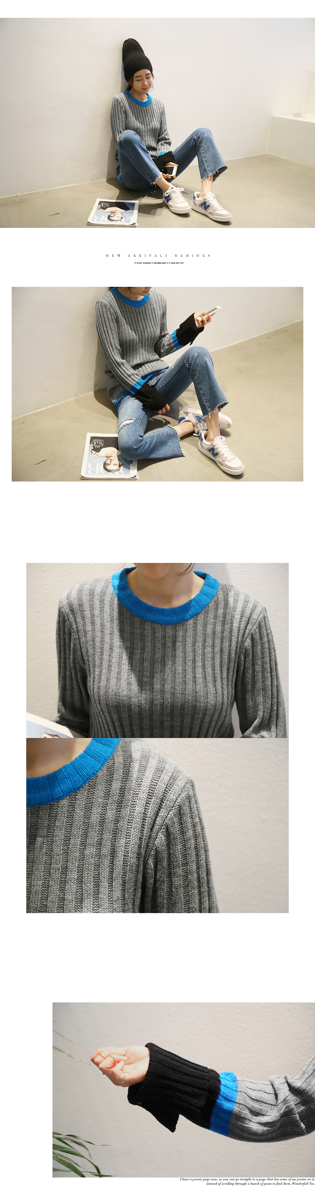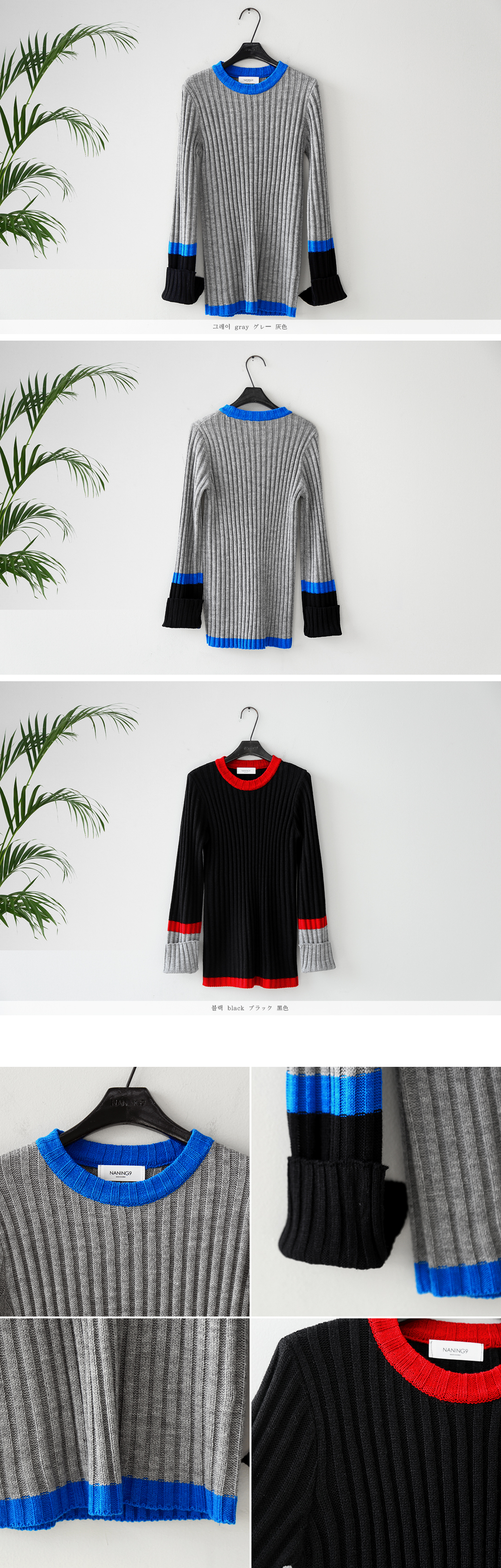 센스넘치는 컬러배색이 돋보이는 니트 소개할게요.소매와 네크라인, 밑단에 포인트가되는 컬러 라인배색으로 군더더기 없이 심플한디자인이어도 너무 멋스러운 아이에요. 적당히 핏되는 라인은 바디라인을 더욱슬림해보이도록 해주고요, 신축성이 좋아 활동량이 많은날에도 부담없이 손이가게된답니다. 롱한 슬리브에 소매끝 컷팅으로 트랜디함을 더해주었어요. 팬츠, 스커트 모두 소화하기 좋은 니트라 소장가치가 높은 아이템이니 놓치지마세요.