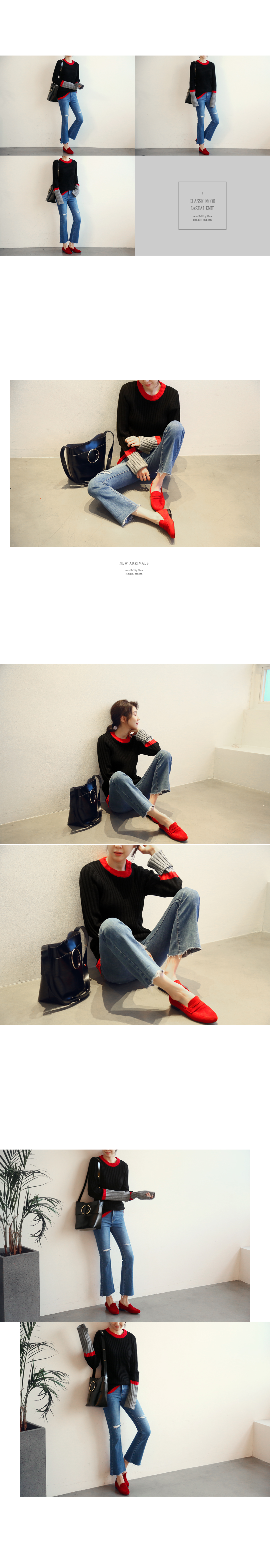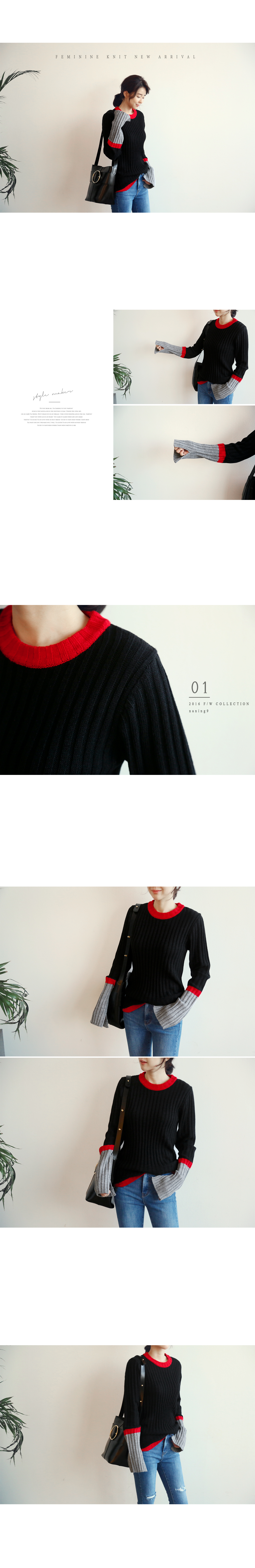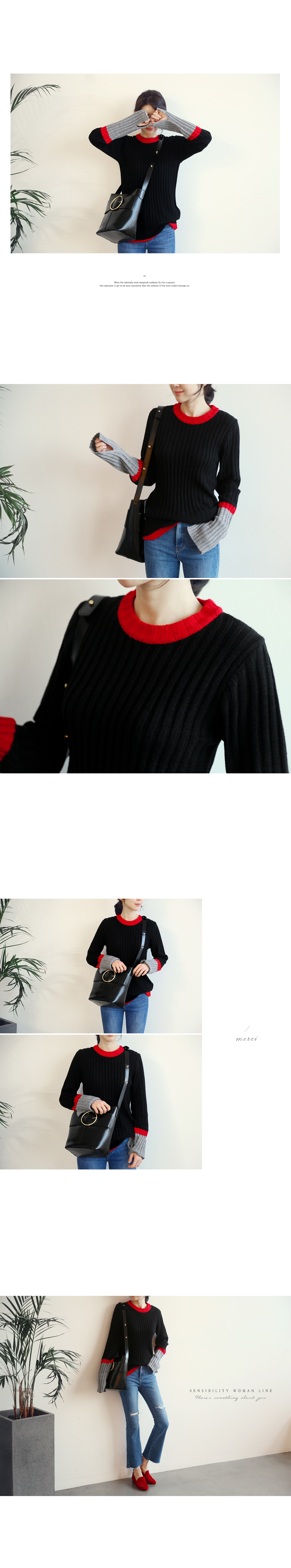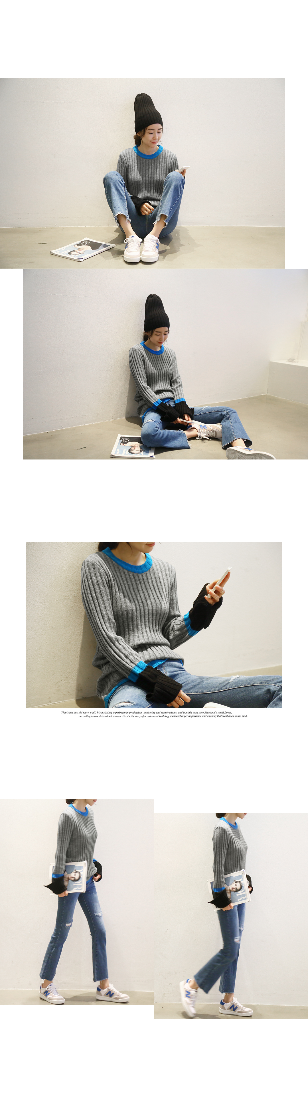 센스넘치는 컬러배색이 돋보이는 니트 소개할게요.소매와 네크라인, 밑단에 포인트가되는 컬러 라인배색으로 군더더기 없이 심플한디자인이어도 너무 멋스러운 아이에요. 적당히 핏되는 라인은 바디라인을 더욱슬림해보이도록 해주고요, 신축성이 좋아 활동량이 많은날에도 부담없이 손이가게된답니다. 롱한 슬리브에 소매끝 컷팅으로 트랜디함을 더해주었어요. 팬츠, 스커트 모두 소화하기 좋은 니트라 소장가치가 높은 아이템이니 놓치지마세요.