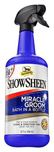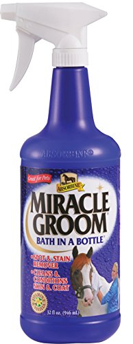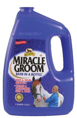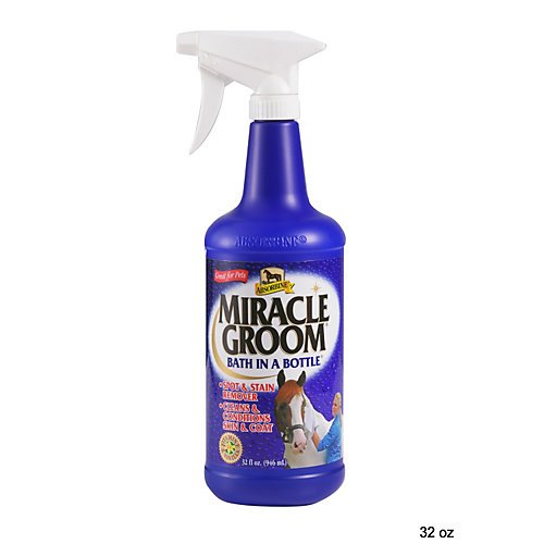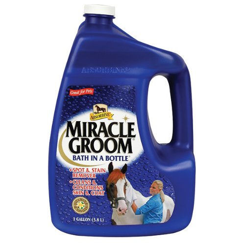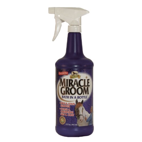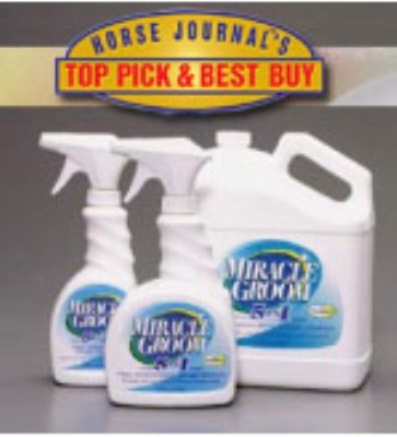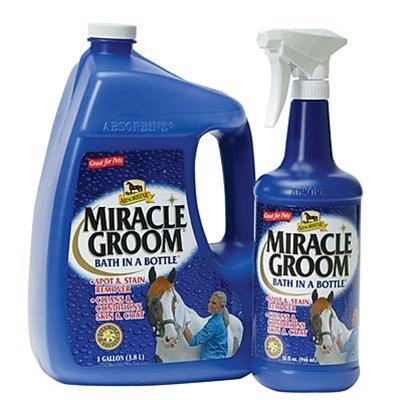 Studio : W F Young Publisher : W F Young Binding : Misc. Product Description Miracle Groom is a patented 5-in-1 formula that cleans, conditions, deodorizes, detangles, and shines in just one application. It produces amazing results as it naturally cleans and nourishes the coat, while still protecting the hair's essential oils. It maintains a bright shine without a greasy residue so that the saddle won't slip. And it works without soap or water, so its great for cold-weather touch-ups. 0