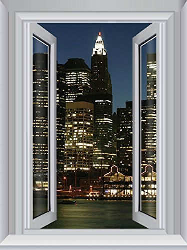 JP London Peel and Stick Removable Wall Decal Sticker Window Mural, City Lights at Night Skyline, 24 by 18-Inch