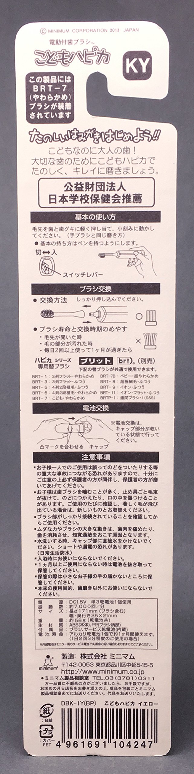 Electric toothbrush children Hapika yellow