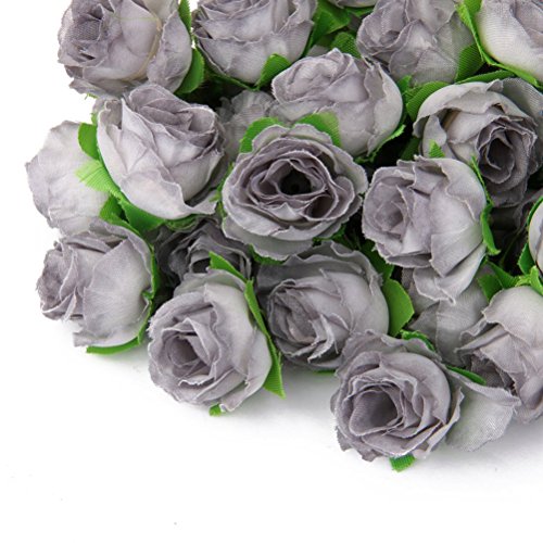 Tinksky 50pcs 3cm Artificial Roses Flower Heads Sew on Wedding Dresses Wedding Favors (Grey)