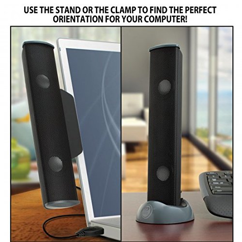 GOgroove SonaVERSE USB 클립 고정식 노트 PC용 스피커 파워풀인 사운드 - SonaVERSE USB 2.0채널 스피커 시스템은,풀 레인지 스테레오 사운드로 대응하는 high ? excursion 드라이버를 2 기탑재 하고 있습니다. 음악을 듣거나,영화를 보거나 하는데,PC내장 스피커가 아쉬운 음에 참는 것은 이제(벌써) 졸업합시다.극한까지 운반 쉬움을 추구한 설계이므로,이 스피커는 여행의 도중에 비디오 회의로 참가 하거나,아이와 영화를 보거나,여행중으로 일을 하거나 하는 것으로(에) 최적입니다.다목적디자인 - 고정용 클립은 1/2인치(1. 27cm)이하의 두께이면,어떤 노트 PC의 디스플레이로도 직접 장착에 옵니다.그립 부분에는 패드가 붙어 있기 때문에,본체에 상처가 들(날) 걱정서는 전혀 쓸데없고,그 위에 또 스피커를 확실히 고정해 줍니다.PC부터 제외하고 사용하고 싶은 경우는,부속 스탠드를 사용해 옆에서도 세로에나 스피커를 세우려고 할 수 있습니다.클립과 스탠드는 양방 착탈가능한 때문에,스피커의 두는 곳소를 자유롭게 바뀝니다.사용하기 쉬움 - 이 컴팩트한세트에는 여분의 어댑터가 불필요합니다.USB포토에 케이블을 끼워넣고, 음량을 조정 하는 것만으로,준비 완료입니다.스마트 폰,타블렛,mp3 플레이어 등은 내장 3.5mm AUX케이블을 사용해 음악 재생이 즐길 수 있습니다.