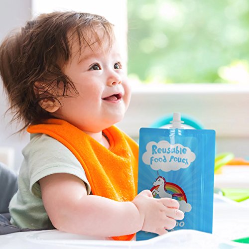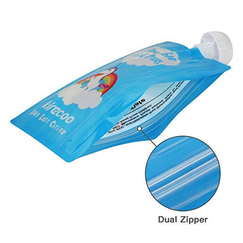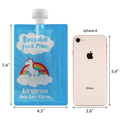 -. Title : Reusable Food Pouch Kirecoo Unicorn Container 7oz 12pcs Side Double Zipper with Funnel for Homemade Organic Puree Refillable Squeeze Storage Pouches for Toddler,Baby,Kids,Child