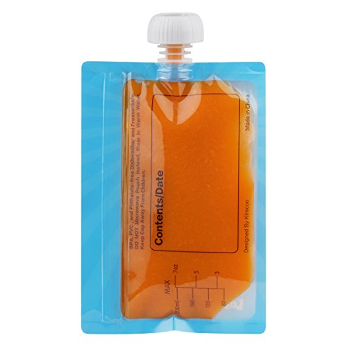 -. Feature : Leak Proof Double Zipper: Double zipper can prevent leakage and no more mess. / Easy To Fill: Side double zipper with a flower design funnel holds pouches open more bigger - make filling more easily, spend less time to clean the outside zipper area. / Easy To Clean: The wide opening, rounded corners and transparent back makes cleaning easy. Dashwasher and freezer supported. It would be great if rinse before loading in dishwasher. / Standard Scale Mark & Convenience Labling Area - Designed with the scale mark and large fill window helps for easy filling of your organic fresh homemade baby foods and snacks. Clear max fill like also can help you know when to stop pouring. There have a place which you can write anything you needed. / OUR GUARANTEE: Pack of 12 reusable squeeze pouches(7oz). Buy with Confidence - the ONLY reusable food pouch backed by a 1-year, hassle-free guarantee.