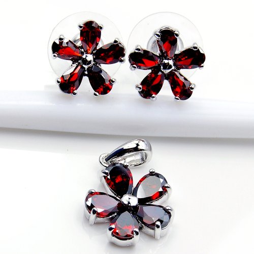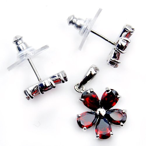 -. Binding : Jewelry -. Brand : The Silver Plaza -. Department : womens -. Feature : Cubic Zirconia Flower; Pendant: 0.85" long/0.5" wide; Earrings: 0.4"x0.4" / .925 Sterling Silver; Weight of set: 4.2 grams / Each item comes shipped in a jewelry box. / You are looking at a one of a kind piece, the pictured jewelry will be the same exact piece you'll receive. / Each item is designed and handcrafted by our artisans. -. Model : X225 -. MPN : X225 -. PartNumber : X225 -. ProductGroup : Jewelry -. ProductTypeName : FINEEARRING -. Title : Sterling Silver 'Filigree Flower' Red CZ Stud Earrings & Pendant Set