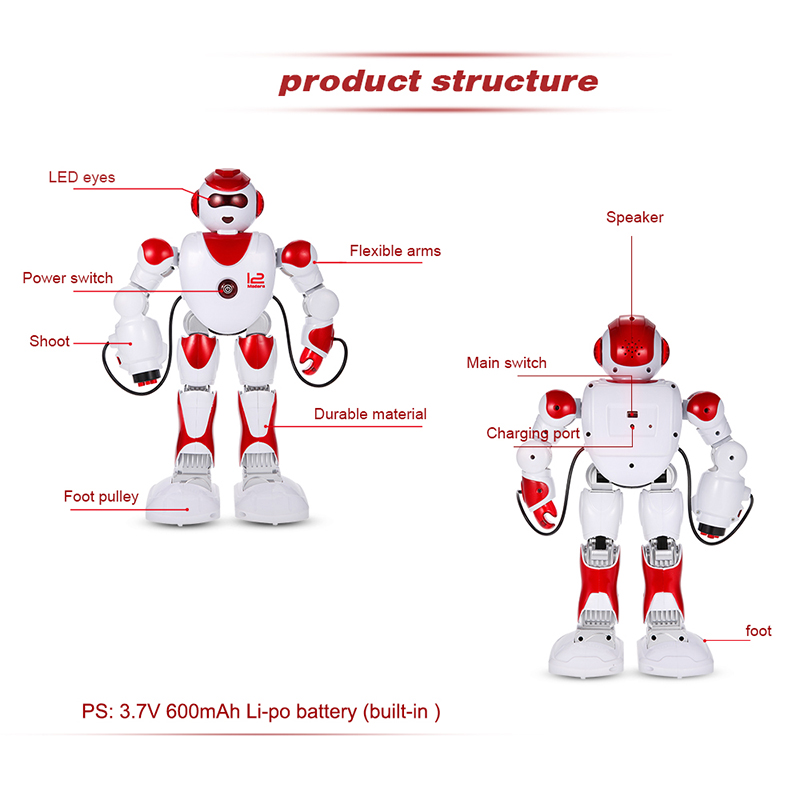 Function: walk, shoot, fight, patrol, music, dance, machine language, arm-swing, programming function