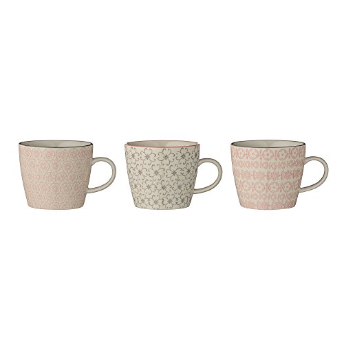 -. Feature : Tassen Cecile / 3er Set handbemalt rosé/grau / 9,5 cm Durchmesser - 8 cm hoch / Bloomingville / Spülmaschinengeeignet