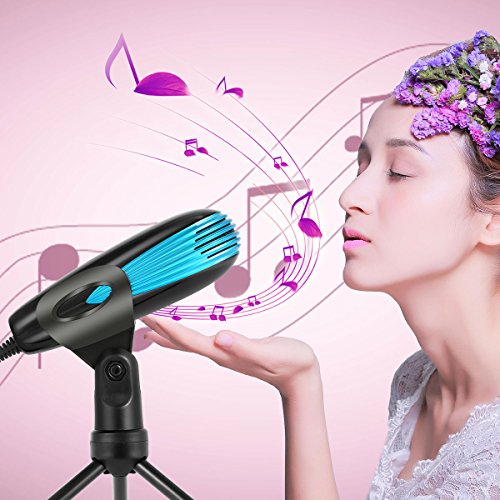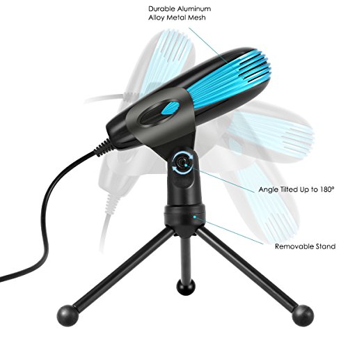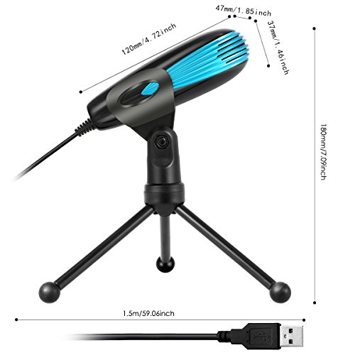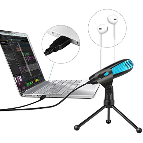 -. Feature : Omnidirectional Pick-up Pattern: This omnidirectional pattern allows this USB condenser microphone to capture sound from all angels,making it ideal for both work and personal need of recording voice. It greatly meets you use of doing broadcasts from the studio,recording narration, video conference,online meetings for work.It is a essential tool for YouTuber who need to make video, vlogging,record podcast, add voice over and video commentary,etc. / Truly Plug& Play USB Microphone:This professional USB condenser microphone is compatible with any USB-equipped computers,including Windows 7/8/10, Mac OS computers. The USB MIC features with a gold-pleated USB port and stretch-proof braided Wire. Just directly plug it into the USB port in your PC or laptops,and you can play it. It is super easy to install and can be automatically set up with the software on your computer. / 3.5MM Audio Out Port&Mute Button&LED Indicator:It has a headphone Jack in the back,which enables you to hear your voice real-timely and monitor what it is recording,making it convenient for internet chatting on Skype&Hangouts and gaming on Discord as well as streaming on Twitch.The mute button on the front makes it easy to mute the mic without setting the volume in computers.The built-in Indicator LED lights Indicator displays the status(Green Light: Microphone connected; RED Light: Mute Mode) / Excellent Sound Quality:The condenser microphone chips provide high sensitivity and advanced noise cancellation technology. The metal mesh outside and the built-in pop filters enable the mic to pick less noise and pops during recording vocals. With a wide frequency resolution of 50MHz-16KHz, it offers a rich, natural sound. / 180 °Adjustable Tripod for Desktop: This tripod allows for 180-degree rotation,which enables you to get better sound quality by adjusting the right angle of Mic to the direction of sound source.The anti-skip silicone rubber foot pads stabilizes you microphone and decreases the trill.The USB cable is long enough to reach your computer wherever it is.