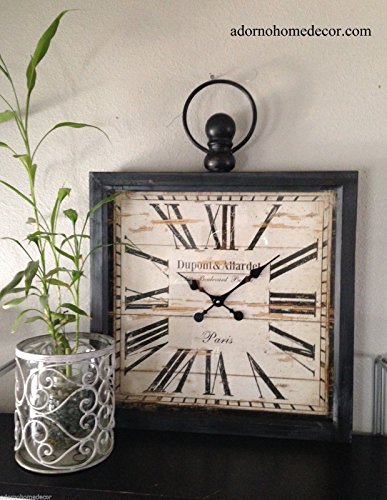 -. Binding : Kitchen -. Color : Black -. EAN : 0719363412305 -. Feature : Made of Metal / Goes great with any Décor in any home space. / Wonderful gift for friends and family / Rustic Vintage Look -. IsAutographed : 0 -. Label : Adornohomedecor -. Manufacturer : Adornohomedecor -. ProductGroup : Home -. ProductTypeName : HOME -. Publisher : Adornohomedecor -. Studio : Adornohomedecor -. Title : Large Metal Square Paris Decor Wall Clock -. UPC : 719363412305