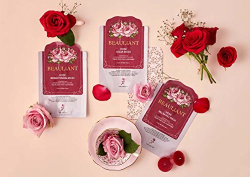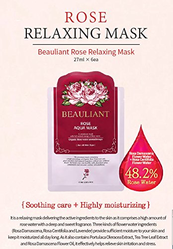 KORE BEAUTY USA Beauliant Relaxing & Soothing Care Face Masks Made with Steamed Distilled Rose Water, 6 Count