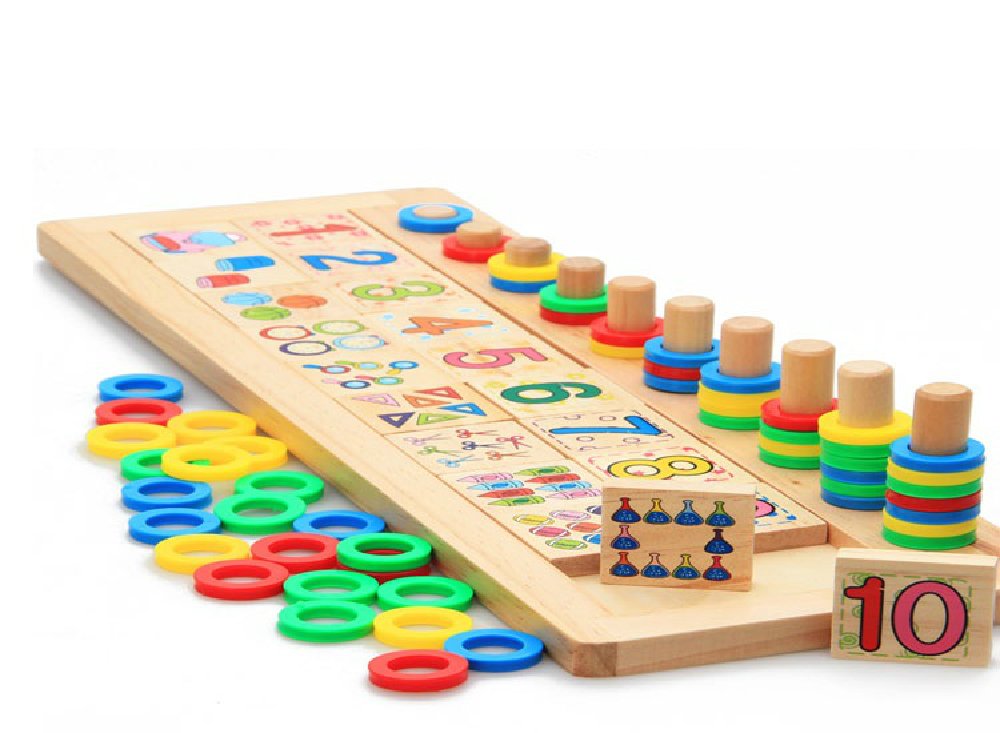 Educational toys Montessori infant children educational materials wooden toys cylinder block puzzle wooden visual recognition dexterity number of play (the number and calculation)