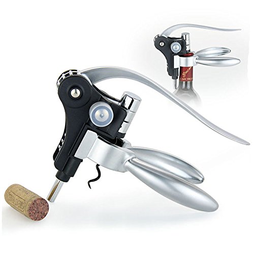 -. Feature : 9 pieces wine opener set includes : Rabbit style corkscrew , a foil cutter , a wine pourer , collar , 2 bottle stoppers , a thermometer and 2 replacement screws. / Easy to use , ensures a quick and simple open of the bottle : the legendary smooth lever action is based on the idea of mechanical advantage. As pressure is applied at one end of the lever handle, power is multiplied at the corkscrew, making it easier to open the bottle with one fluid motion. / Works on all types of wine bottles, strong, non-stick coated screw will not damage corks. / Ideal gift for wine lovers and enthusiasts , also a great gift idea for many occasions such as wedding receptions , housewarming , anniversary celebration , christmas or garden party. / This high quality wine accessories gift is built to last. The precision constructed wine corkscrew is made of stainless steel, high strength zinc alloy with bronze handles, metal gears and a Teflon coated spiral.