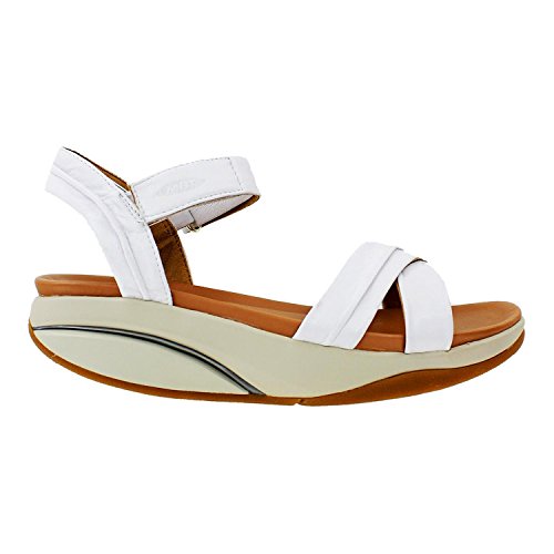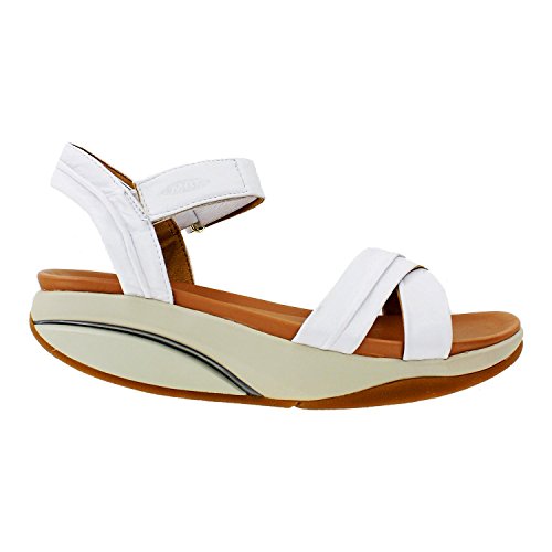 Studio : MBT Publisher : MBT Binding : Apparel Product Description This MBT style is a Footwear etc. exclusive! We are the only retailer in the United States that sells them. The MBT Haifa is a casual women's leather backstrap sandal with an adjustable hook and loop ankle strap. MBT shoes change the way you use your body so that your muscles, back, and joints work as a unit to compensate for the shoes natural instability. The unique multi-layered sole and Masai sensor help you to achieve improved posture and balance, strengthen and tone muscles, and reduce pressure on your joints as it emulates the feeling of walking on sand. The rolling motion of MBT shoes is greatly beneficial to those with plantar fasciitis and other types of foot problems. MBT Haifa White Leather Women's Sandal Features include: Leather upper Soft microfiber lining allows moisture to wick and helps keep your feet cool and dry Hook and loop ankle strap MBT patented rocker sole and non-marking outsole Performance sole structure contributes to straighter posture, increased muscle activity and is gentle on the back and joints when you walk and stand. Part of the Performance collection The MBT Index simplifies the process of finding the right level of MBT shoe for your needs. It ranks MBT into one of three categories, starting at Activate, our least level of rock, and progressing through Dynamic and ending with our highest level of rock, Performance. If you have any questions you can find the answers in our MBT Shoes Frequently Asked Questions section. Wearing MBT Shoes for the first time? Watch the MBT Shoes Instructional Video The MBT Index simplifies the process of finding the right level of MBT shoe for your needs. It ranks MBT into one of three categories, starting at Activate, our least level of rock, and progressing through Dynamic and ending with our highest level of rock, Performance. 0