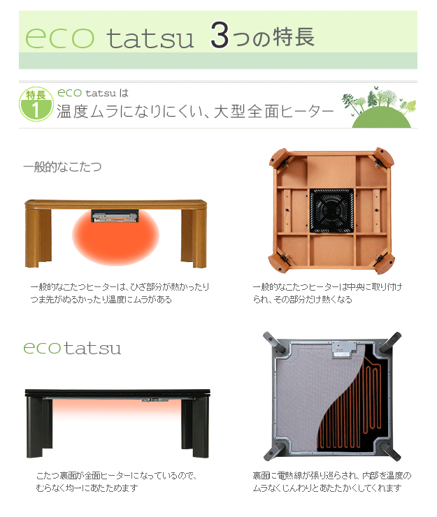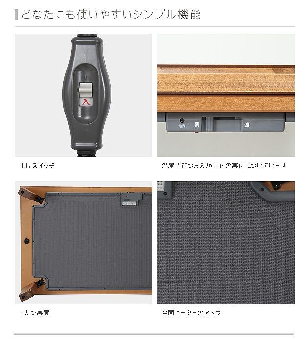 商品について:天然木の風合いが落ち着く和モダンな折れ脚タイプのこたつ。ヒーター部分は裏全面がフラットという新しいこたつです。こたつ内が全体が均一に暖かくなるうえ出っ張りがありません。しかも省電力設計(300w)で電気代がかなりおトク。中間スイッチ式