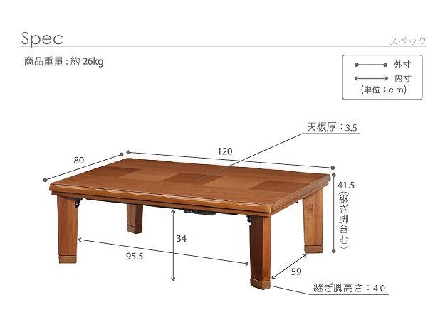 サイズ(cm):幅120x奥行80x高さ(継ぎ脚込)41.5・26kg