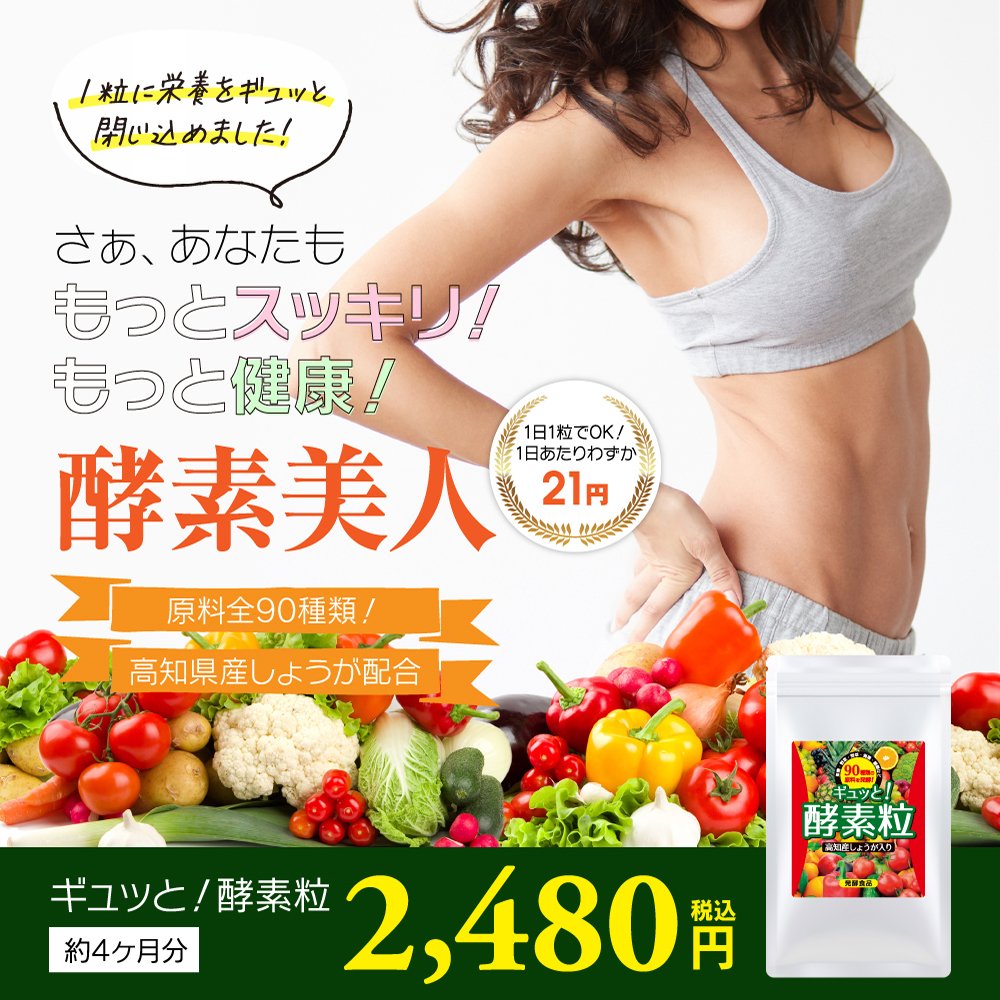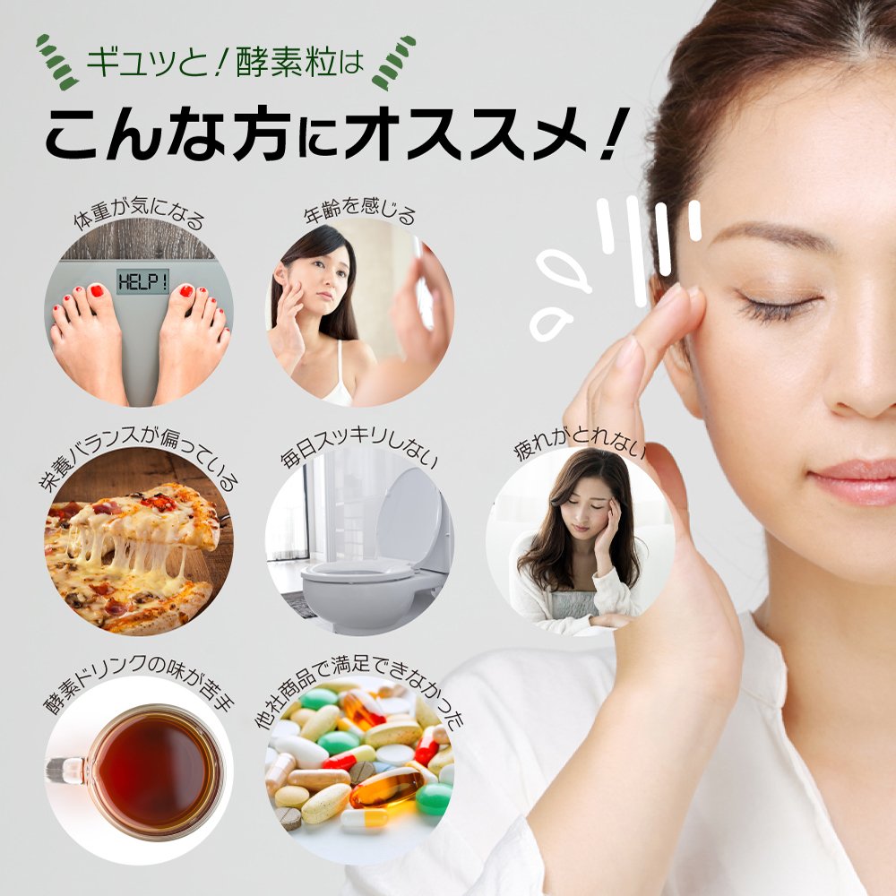 ギュッと!酵素粒は1日1粒好きなタイミングでお水と一緒に飲むだけの簡単!