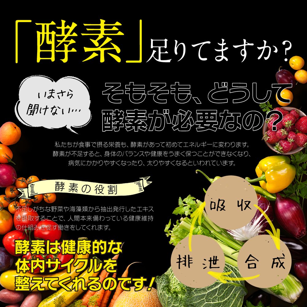 不足しがちな野菜や海藻類から抽出発酵したエキスを摂取することで、人間に本来備わっている健康維持の仕組みを促す働きをしてくれます。