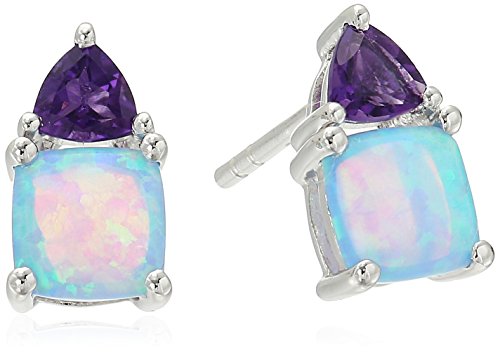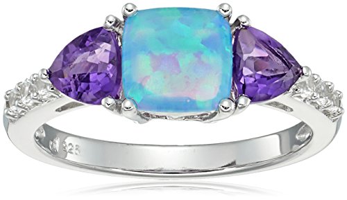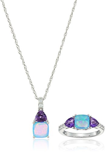 -. Title : Sterling Silver Lab Created Blue Opal, Amethyst and Lab Created White Sapphire Ring, Pendant, Earrings