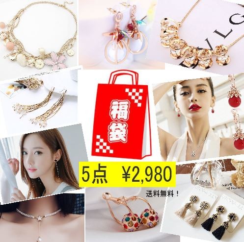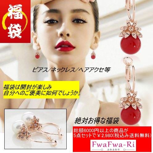 商品限定の数に限りがございますので売り切れ次第、終了させていただきます。■商品説明■こちらの商品はレディースアクセサリー『5点セット』となります。福袋の内容としましてはピアス/ネックレス/ブレスレット/ヘアアクセサリーの中から人気商品をピックアップし5点セットで詰めさせて頂いております。商品選択(1)ピアスあり 注意:商品には必ずピアスが含まれます。 お写真掲載は一部商品のご紹介とさせていただきます。お素材品質に関しましては合金/シルバーも含みますので金属アレルギーをお持ちの方はご購入をお控えください。※表面には細かなキズや凹みがみられる場合がございます。※装着時に無理な力が加わると破損に繋がる場合がございます。着用の際には取り扱いにご注意ください。※金属アレルギーをお持ちの方は、ご購入をお控えください。また、痒みや肌荒れが生じた場合は装着せずに医師にご相談ください。※海外大量生産により国内クオリティをお求めの方はご購入をお控えください。福袋商品は破損以外の交換・返品は承れません事、ご了承ください。