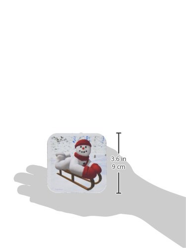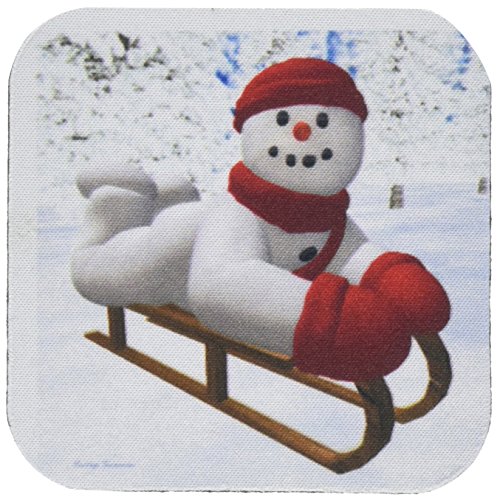 3dRose cst_30540_2 Sledding Snowman-Soft Coasters, Set of 8