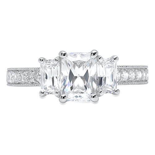 -. Title : 1.92ct Brilliant Emerald Round Cut Solitaire Simulated Diamond CZ 3-Stone Statement Ring 14k White Gold