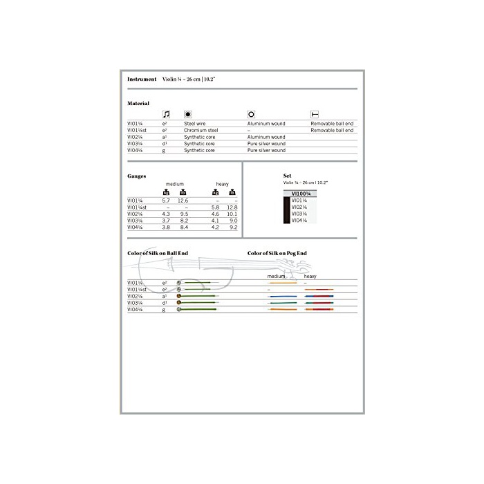 원본상품명: Vision ヴィジョン バイオリン弦セット 1/4