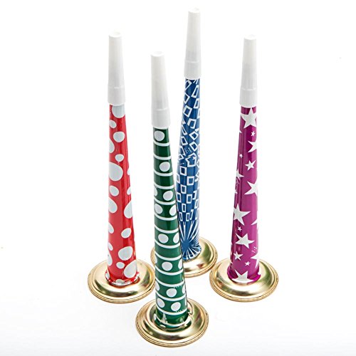 Studio : Party Time Manufacturing Publisher : Party Time Manufacturing Binding : Toy Product Description Noisemakers to Ring in the New Year! The Metal Horn Noisemakers are a great addition to any New Years Eve party. A great way to celebrate the New Year, and the perfect match to any rainbow color theme. One horn per package. 11" long. Each with 2 1/2" white plastic mouthpiece. Assorted colors and designs. Made in the USA. Products containing a mouthpiece or that are intended for use near the mouth are not returnable. Celebrate the New Year with noisemakers! The best way to party when the clock strikes 12 is with stunning horns and whistles. Make your New Years party the talk of the year with all the best New Years Eve noisemakers from Century Novelty. One horn. 11″ long. Assorted colors and designs. Made in the USA. Products containing a mouthpiece or that are intended for use near the mouth are not returnable. 0
