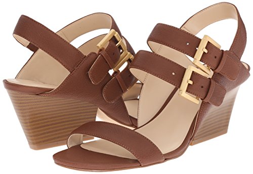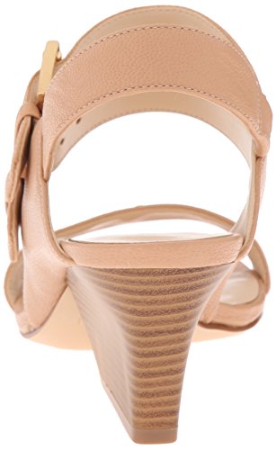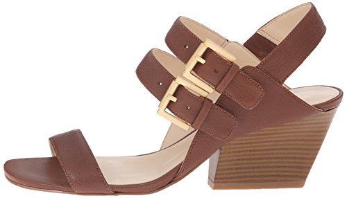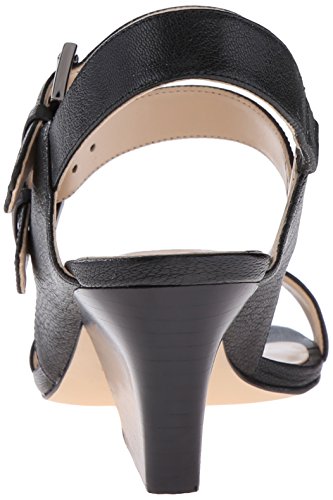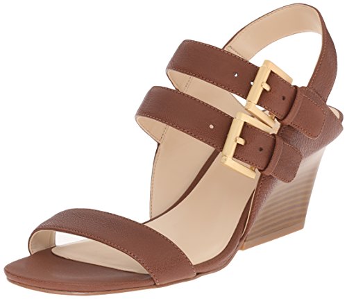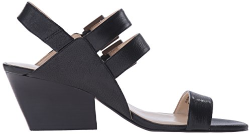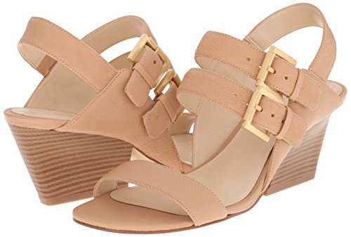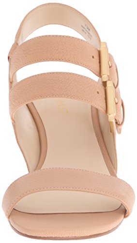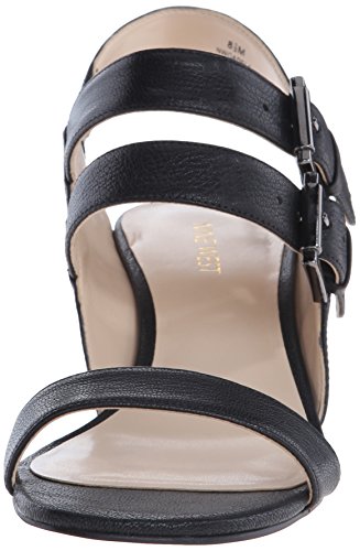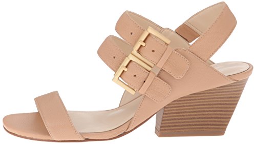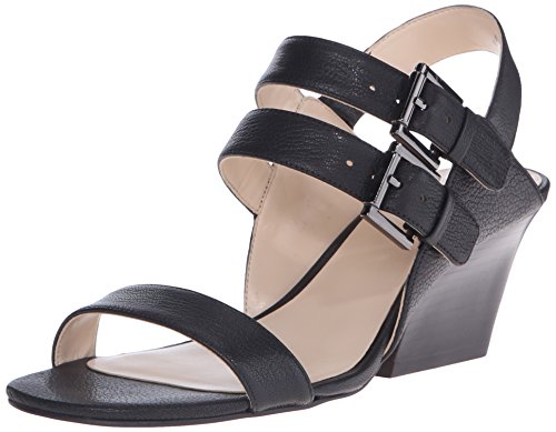Two-piece sandal featuring slender toe strap and double buckle straps at ankle