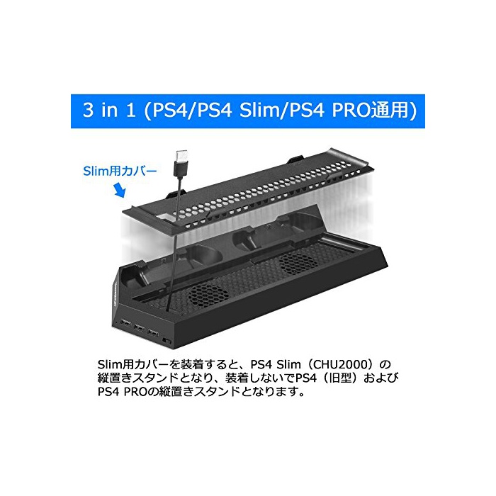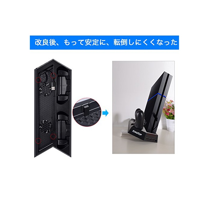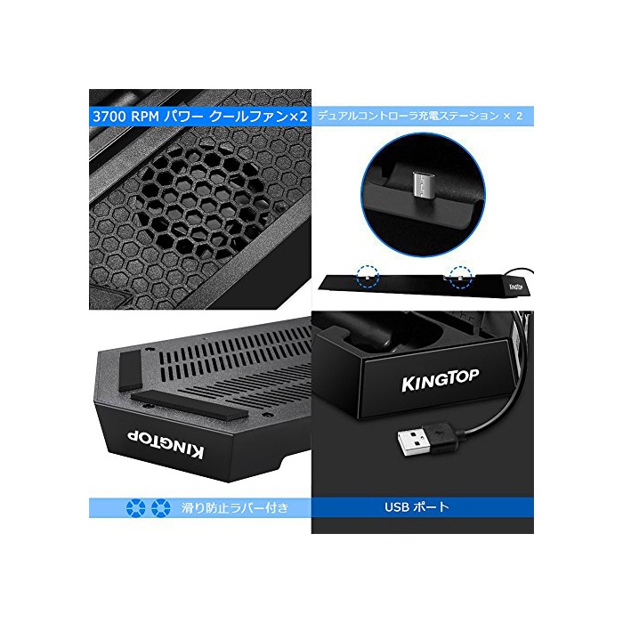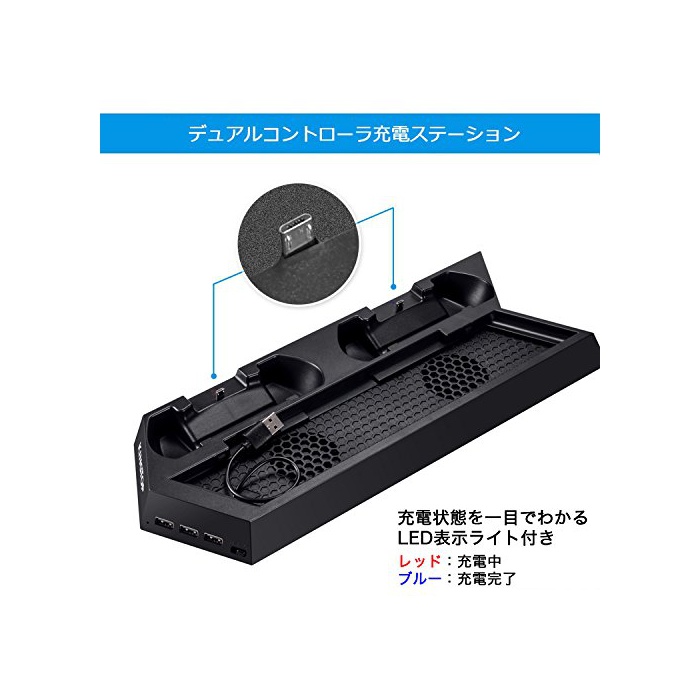 원본상품명: KINGTOP 冷却 新型 PS4 PRO 用版コントロラ 充電スタンド コントロラ2台同時充電 PS4本冷却ファン有 USBハブ3ポト SLIM用可能 日本語明書付き