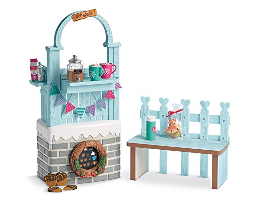 -. Binding : Toy -. Brand : American Girl -. EAN : 0887961586893 -. Feature : This is the WellieWishers' favorite gathering spot after ice skating! / This cute set includes everything they need to feel toasty warm inside / Includes a stand, bench pretend mugs of cocoa and more! / Fits all WellieWisher 14.5" dolls / The perfect addition to any WellieWisher collection! -. Label : American Girl - Toys -. Manufacturer : American Girl - Toys -. Model : FGF67-9665 -. MPN : FGF67-9665 -. NumberOfItems : 1 -. PackageQuantity : 1 -. PartNumber : FGF67-9665 -. ProductGroup : Toy -. ProductTypeName : TOYS_AND_GAMES -. Publisher : American Girl - Toys -. ReleaseDate : 2017-08-24 -. Studio : American Girl - Toys -. Title : American Girl WellieWishers Cozy Up Cocoa Stand -. UPC : 887961586893 -. Warranty : No Warranty