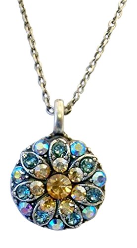 -. Feature : Blue & Light Brown Crystals : silver plated pendant necklace : nickel free / Delicate Pendent : One side has a floral design made of Swarovski Crystals : The back has a three dimensional guardian angel / pendant measure approx 5/8" (about the size of a dime) : necklace is adjustable from 15" to 19" / hand crafted with Swarovski crystals & is designed with love, warmth & spiritual harmony / Made in Israel : Lifetime guarantee