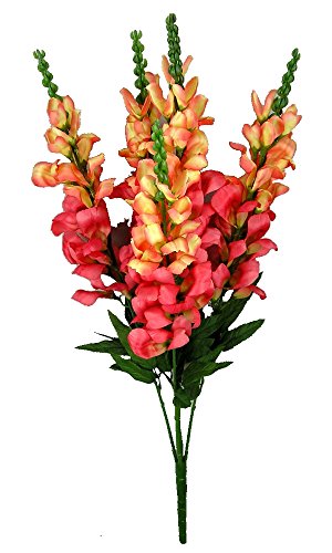 Admired By Nature 5 Stems Artificial Blooming Snapdragon with Greenery for Home, Wedding, Restaurant & Office Decoration Arrangement, Coral Mix, 3 Pieces
