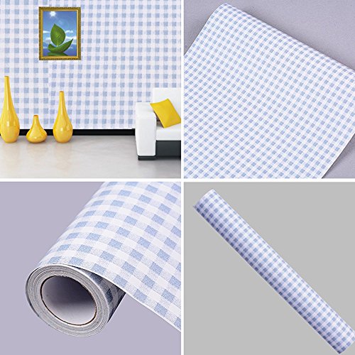 -. Title : SimpleLife4U Mediterranean Style Contact Paper Blue-White Gingham Countertop Door Sticker Shelf Liner 17.7inch by 9.8 Feet