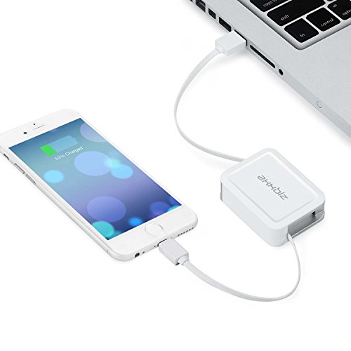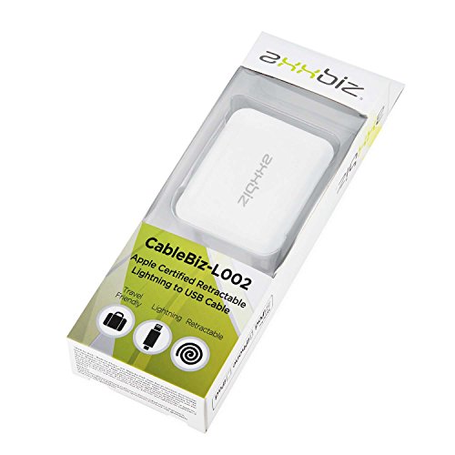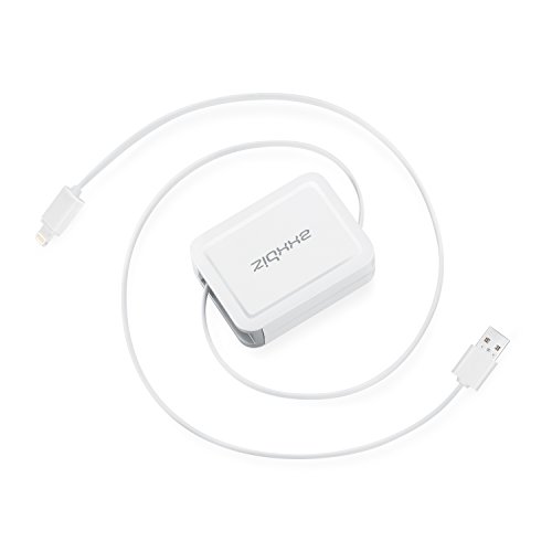 Axxbiz 2.6' Retractable Lightning Cable for iPhone 5/5s/6/6 Plus/6s/6s Plus, iPad Pro, White (50033)
