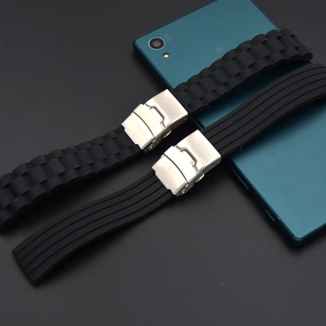 | [해외] 높은 품질의 시계 스트랩 럭셔리 블랙 20 미리메터 22 미리메터 방수 시계 스트랩 밴드 고무 스트랩 럭셔리 스테인레스 스틸 버클 |