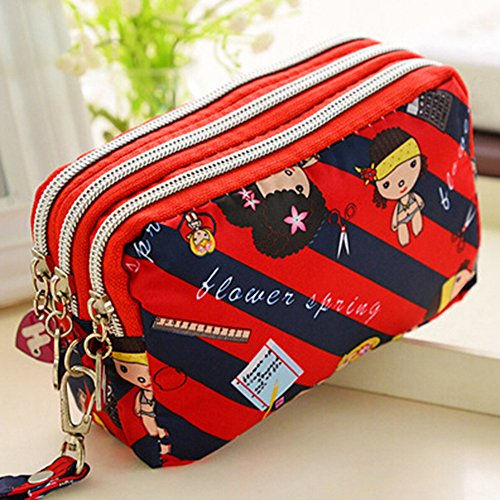 -. Feature : Women's small handbag, easy and convenient to carry, contain small things. / Adorned with triple zipper, Harajuku style pattern and nylon. / Quite pretty, a nice accessary to store coins, money, keys, phone or other small things. / Size: 16cm x 10cm x 6cm/6.30" x 3.94" x 2.36" (Approx.) / Package Includes: 1 x Wallet