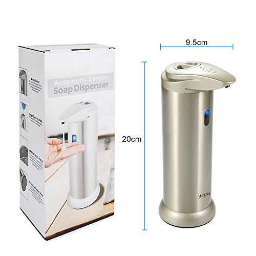 Automatic Soap Dispenser, Yegu 300ML Stainless Steel Touchless Sensor Soap Dispenser with Fingerprint Resistant and Waterproof Base Perfect for use in Kitchen and Bathroom[Newest Version]