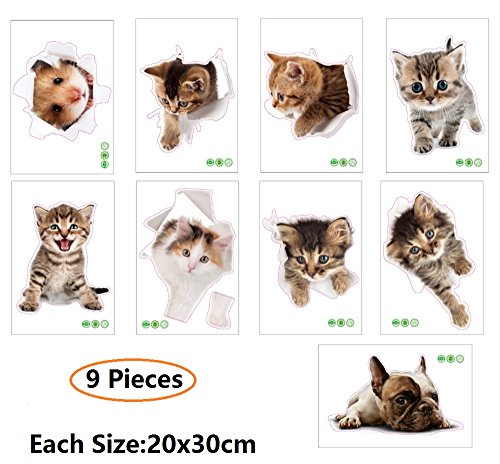 Amaonm 9 PCS Removable 3D Cute Animals Wall Decals Lovely Cat Dog Hamster Through The Wall Fun Kids Room Stickers Nursery Room Wall art Decor Bathroom Decal Babys Stickers Classroom Decoration Decal