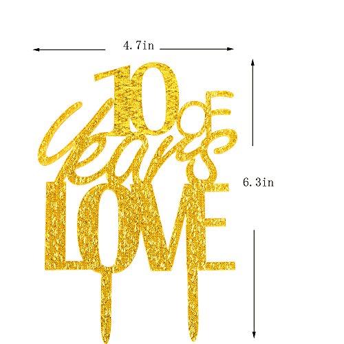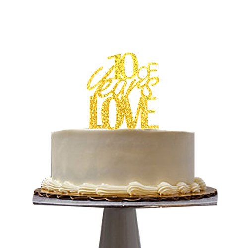10 years of love cake topper for 10th anniversary wedding party decor gold acrylic
