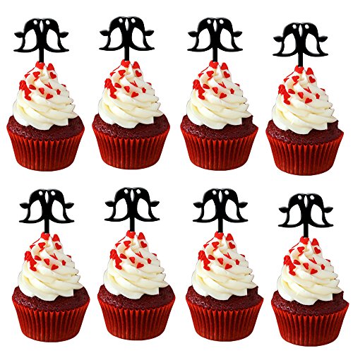 Ecape Reusable Cupcake Toppers Picks Adorable Penguin Cupcake Decoration 8 Pcs a Set Acrylic Black - Penguin