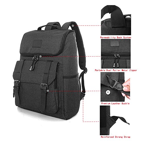 Features: PREMIUM QUALITY?Made from superior lightweight, tear water resistant, soft, natural strips oxford material which is extremely sturdy and cool looking. CARRY FASHIONABLE :Standout unique design with PU leather magnetic-snap belt flap on the front and felicitous PU leather decor make it's wonderful chic backpack for casual wearing. HOLDING ALL YOUR NEEDS: Extra large capacity and several functional pockets for the daily commute or longer weekend-length hauls, organized your Macbook, Tablet, clothes , Books and other carrying essentials clear. COMFORTABLE STRONG CONSTRUCTURE: Adjustable ergonomic thick breathable mesh padding shoulder straps and back system provides optimum comfort for your shoulders, superior metals, extra strong material and cotton lining pockets, every corner and pressure lines are extremely neat. This laptop backpack will makes you feel less weight on your trip carrying with heavy stuff. MULTY USE: This laptop backpack is great for men, women as well, especially fit for casual use, school study, business trip and party. It's an ideal gift for boys and girls.