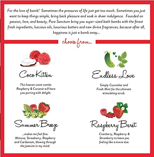 BIG & LUSH 4 Tennis ball sized 6 oz Vegan - Non GMO - Assorted Bath Balls - White with Red Hearts Bath Fizzers - evoking Spa Indulgence Boudoir Chic and a Tub full of Bath Bomb Bliss