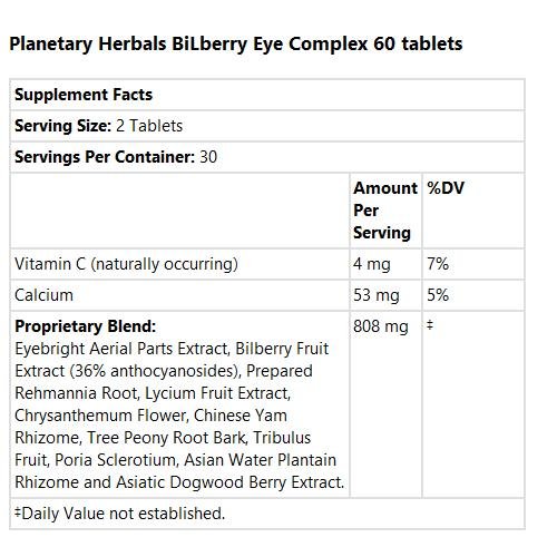 ReleaseDate : 2015-06-22 Studio : Planetary Herbals Publisher : Planetary Herbals Binding : Health and Beauty Product Description Planetary herbals bilberry eye complex combines concentrated bilberry extract, shown in numerous studies to support visual acuity, with the classic Chinese formula ming mu di huang wan. Nourishing support for normal vision. Provide rich amounts of anthocyanosides. Delivers potent antioxidant protection. 0